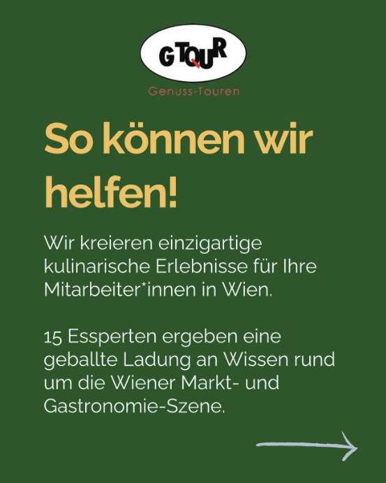 Mit mehr als 3.000 Gästen jährlich und 19 Jahren Erfahrung mit der Organisation und Durchführung von privaten GenussTouren für kleine und große Gruppen, Firmen, Teams und Privatpersonen verfügen wir über eine Menge Expertise in diesem Bereich. So haben wir erfolgreich Gruppen bis zu 86 Personen gleichzeitig geführt und viel positives Feedback erhalten. Und wir freuen uns nach wie vor individuelle Kulinarik-Erlebnisse zu planen und nehmen die Herausforderung gerne an. Ob Markt-Tour, Restaurant-Hopping oder Genuss-Bim – wir gestalten ein Genusspaket nach eurem Geschmack. Für geschlossene Gruppen passen wir gerne unsere Routen individuell an und stimmen das Getränke- und Speisenangebot ab. Ein Rundum-Service vom Feinsten!